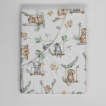 Prześcieradło z gumką do łóżeczka 70x160 bawełniane | 104hus | białe | zwierzątka safari