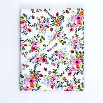 Prześcieradło z gumką do łóżeczka 80x180 bawełniane | 348Mbi | białe | kwiaty i motyle