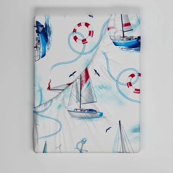 Prześcieradło z gumką do łóżeczka 80x190 bawełniane | 128nowe | białe | żagłowki morska
