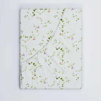 Prześcieradło z gumką do łóżeczka 80x190 bawełniane | 121ecr | ecri | bluszcz i kwiaty