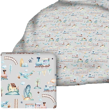 Prześcieradło z gumką do łóżeczka 80x200 bawełniane | 303sza | szara | ciuchcie pociagi