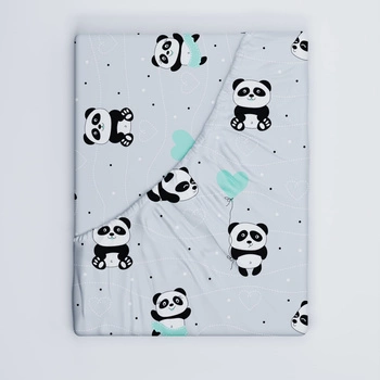 Prześcieradło z gumką do łóżeczka 90x160 bawełniane | 198Pmi | szaro miętowe | misie panda