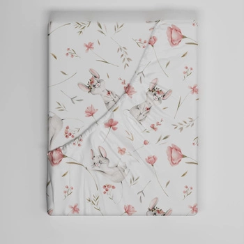 Prześcieradło z gumką do łóżeczka 90x160 bawełniane | 428mys | białe | myszki w kwiatach