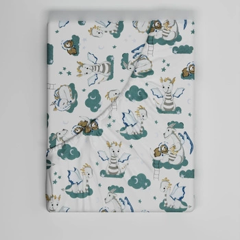 Prześcieradło z gumką do łóżeczka 90x180 bawełniane | 411bia | białe | dinozaury