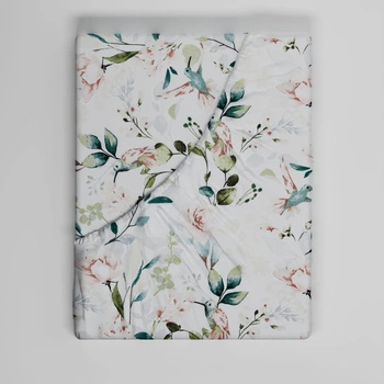Prześcieradło z gumką do łóżeczka 90x190 bawełniane | 131kol | białe | kwiaty i kolibry
