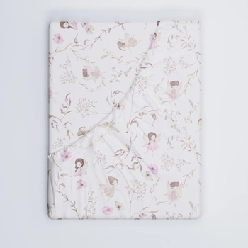 Prześcieradło z gumką do łóżeczka 90x200 bawełniane | 154pas | beżowo różowe | wróżki i kwiaty