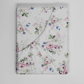 Prześcieradło z gumką do łóżeczka 90x200 bawełniane | 426bia | białe | kwiaty jabłoni