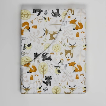 Prześcieradło z gumką do łóżeczka 90x200 bawełniane | 014jeleń | biało pomarańczowe | zwierzątka leśne