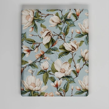Prześcieradło z gumką do łóżeczka 90x180 bawełniane | 075nie | niebieskie | kwiaty jabłoni