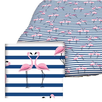 Prześcieradło z gumką do łóżeczka 70x160 bawełniane | 153granat | biało granatowe | flamingi pasy