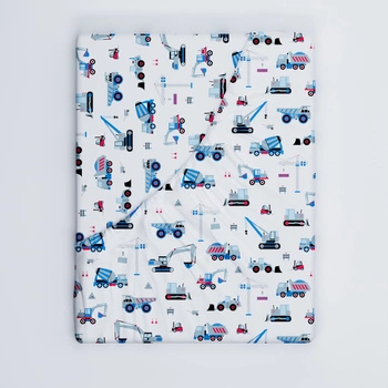 Prześcieradło z gumką do łóżeczka 70x160 bawełniane | 404blu | niebieskie | koparki