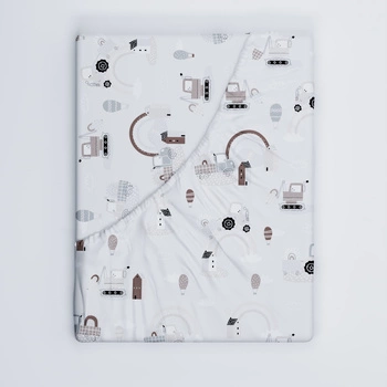 Prześcieradło z gumką do łóżeczka 80x200 bawełniane | 505beż | beżowe | samochody koparki