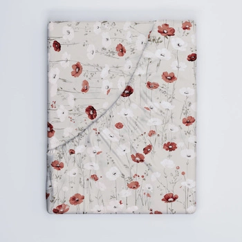 Prześcieradło z gumką do łóżeczka 90x180 bawełniane | 126Mbe | beżowe | maki kwiaty
