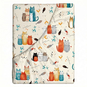 Prześcieradło z gumką do łóżeczka 70x140 bawełniane | 432kol | kolorowe | koty pupile