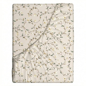 Prześcieradło z gumką do łóżeczka 80x200 bawełniane | 122beż | beżowe | powoje bluszcz