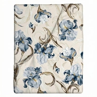 Prześcieradło z gumką do łóżeczka 90x180 bawełniane | 382iry | biało niebieskie | kwiaty irysy