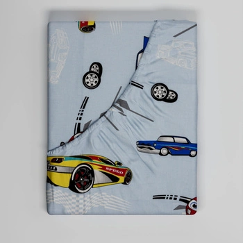 Prześcieradło z gumką do łóżeczka 90x190 bawełniane | 136nieb-auto | niebieskie | samochody