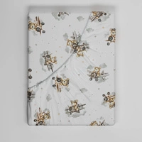 Prześcieradło z gumką do łóżeczka 90x180 bawełniane | 303Sbe | biało beżowe | misie samoloty
