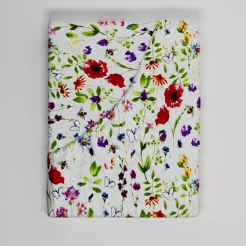 Prześcieradło z gumką do łóżeczka 90x200 bawełniane | 126mak | białe | kwiaty maki