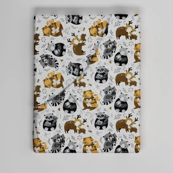 Prześcieradło z gumką do łóżeczka 90x190 bawełniane | 020las | biało brązowe | zwierzątka leśne