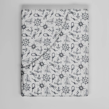 Prześcieradło z gumką do łóżeczka 90x180 bawełniane | 040grn | biało granatowe | wzór marynarski