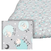 Prześcieradło z gumką do łóżeczka 90x190 bawełniane | 109mie | szaro miętowe | owieczki