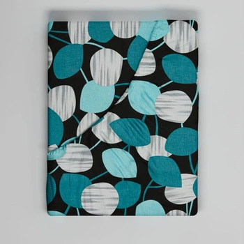 Prześcieradło z gumką do łóżeczka 90x190 bawełniane | 030trk | czarno turkusowe | liście