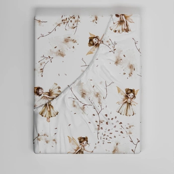 Prześcieradło z gumką do łóżeczka 90x190 bawełniane | 154Nbr | biało brązowe | wróżki elfy