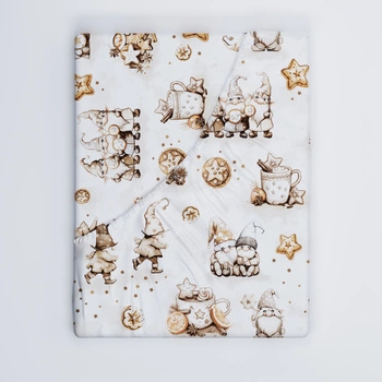 Prześcieradło z gumką do łóżeczka 70x140 bawełniane | 400bra | biało brązowe | świąteczna gnomy skrzaty