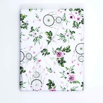 Prześcieradło z gumką do łóżeczka 80x190 bawełniane | 250zie | biało zielone | łapacz snów