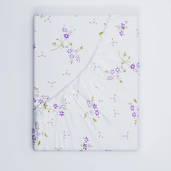 Prześcieradło z gumką do łóżeczka 80x180 bawełniane | 209wrz | biało wrzosowe | kwiaty