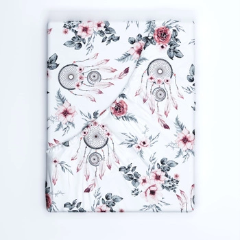 Prześcieradło z gumką do łóżeczka 60x120 bawełniane | 250zie | biało zielone | łapacz snów