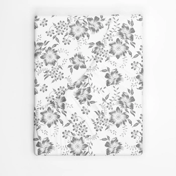 Prześcieradło z gumką do łóżeczka 90x180 bawełniane | 116bsz | biało szare | kwiaty