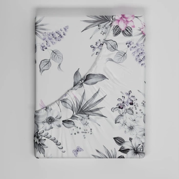 Prześcieradło z gumką do łóżeczka 90x190 bawełniane | 237bra | biało beżowe | kwiaty