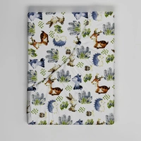 Prześcieradło z gumką do łóżeczka 70x160 bawełniane | 014now | biało niebieskie | zwierzątka leśne