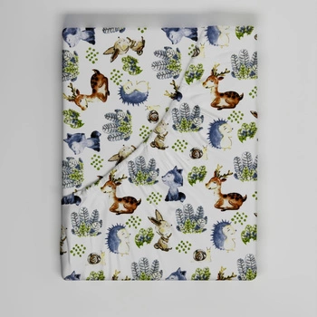 Prześcieradło z gumką do łóżeczka 80x180 bawełniane | 014now | biało niebieskie | zwierzątka leśne