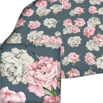 Prześcieradło z gumką do łóżeczka 90x180 bawełniane | 336grf | grafitowe | kwiaty piwonie