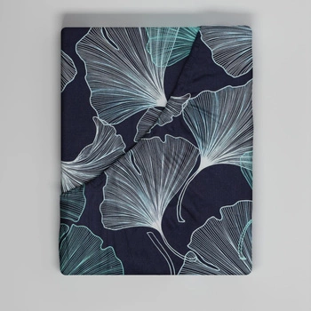 Prześcieradło z gumką do łóżeczka 70x140 bawełniane | 324Dgr | granatowe | liście miłorzębu