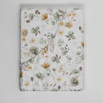 Prześcieradło z gumką do łóżeczka 40x90 bawełniane | 415zol | biało żółta | polne kwiaty