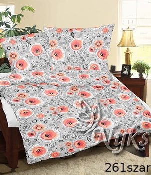 Pościel z kory 140x200 + poszewka na poduszkę 70x80 | 261szar | szaro różowa | kwiaty
