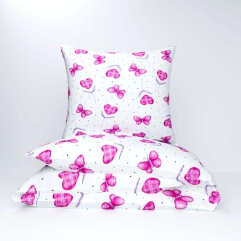Pościel z kory 200x220 + poszewki na poduszkę 2*70x80 | 142róż | różowa | serca i kokardki