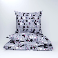 Pościel dla dziecka bawełniana 120x180 + poszewka na poduszkę 70x80 | 061s-r | szaro różowa | koty