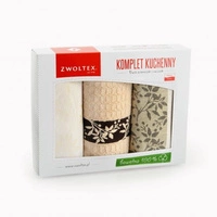Poszukując ściereczek i ręczników kuchennych sprzedawanych w zestawach warto skorzystać z oferty sklepu internetowego Nyks. Znajdują się tam funkcjonalne komplety kuchenne polskiego producenta Zwoltex, które doskonale sprawdzą się podczas codziennego przygotowywania posiłków. Dostępne są różne warianty z 3 elementami - ścierkami i ręcznikami kuchennymi o różnych wzorach, jednak dopasowane do siebie pod względem stylistyki i kolorystyki. Dzięki temu zapewniają estetyczny wygląd kuchni. Komplety kuchenne zapakowane są w ozdobne pudełka, co sprawia, że idealnie nadają się na prezent. Wszystkie ściereczki i ręczniki kuchenne wykonane są z najwyższej jakości 100% bawełny o różnej gramaturze. Utkano je wykorzystując technologię żakardu z klasycznej przędzy bawełnianej o ciekawym wzornictwie. Dzięki temu charakteryzują się dużą wytrzymałością i odpornością na uszkodzenia. Ze względu na różne rozmiary, wzory i kolory do wyboru z łatwością można znaleźć idealną propozycję dostosowaną do indywidualnych potrzeb i wystroju wnętrza.