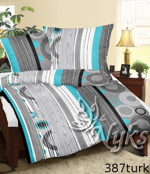 Pościel dla dziecka bawełniana 120x160 + poszewka na poduszkę 50x60 | 387trk | szaro turkusowa | wzór geometryczny