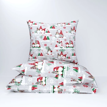 Pościel dla dziecka bawełniana 140x160 + poszewka na poduszkę 50x60 | 421zie | szara | wzór świąteczny skrzaty