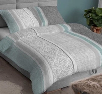 Pościel bawełniana 160x200 + poszewki na poduszkę 2*70x80 | 031s-z | szaro zielona | wzór geometryczny