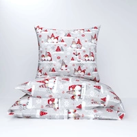 Pościel bawełniana 160x200 + poszewki na poduszkę 2*70x80 | 421zie | szara | wzór świąteczny skrzaty