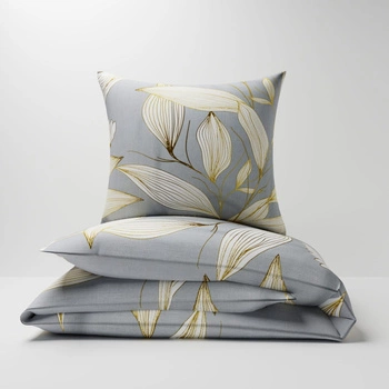 Pościel bawełniana 160x200 + poszewki na poduszkę 2*70x80 | 175sza | szara | kwiaty liście