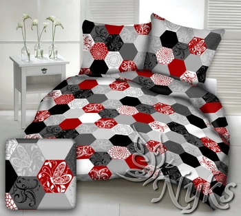 Pościel bawełniana 200x220 + poszewki na poduszkę 2*70x80 | D208red | szaro czerwona | plastry miodu