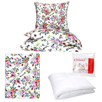 Zestaw pościeli 100x160 + 50x60 + prześcieradło we wzorze 80x160 | 348Mbi | biała | kwiaty i motyle